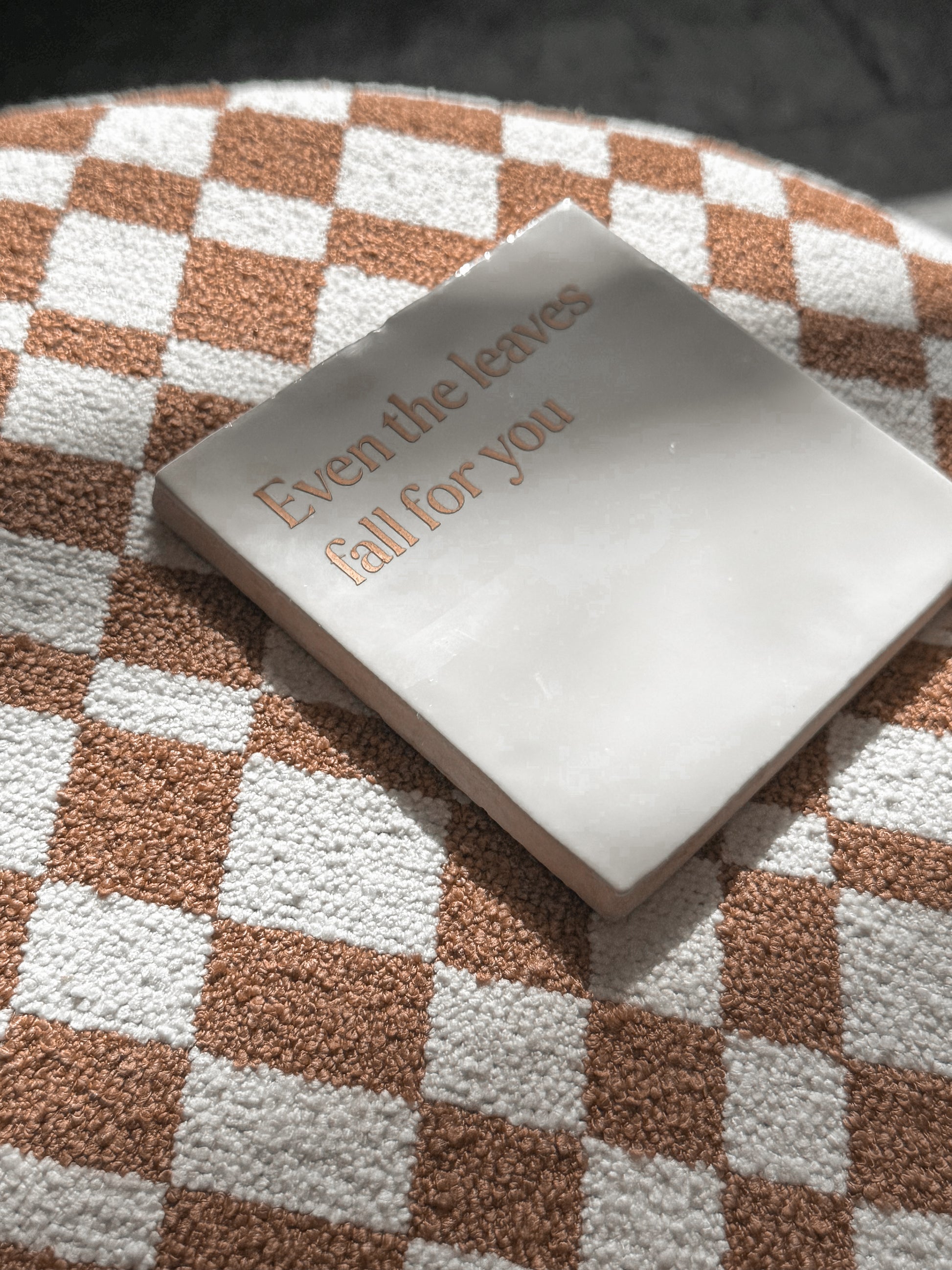Let op : het keramieken tegeltje is een natuurproduct en kan dus iets afwijken kwa vorm dan op de foto weergegeven word.